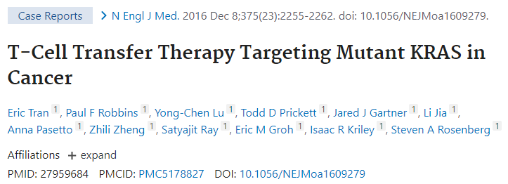 [2] T-Cell Transfer Therapy Targeting Mutant KRAS in Cancer.NEJM.2016