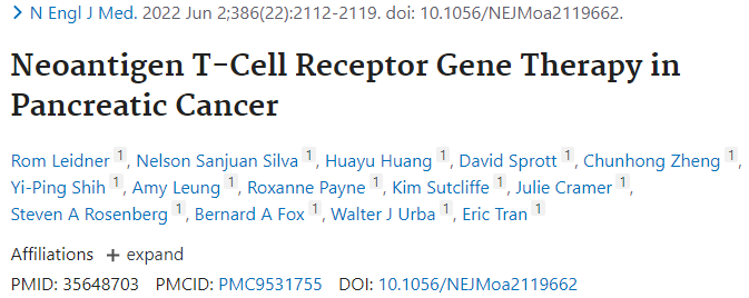 [3] Neoantigen T-Cell Receptor Gene Therapy in Pancreatic Cancer,N Engl J Med.