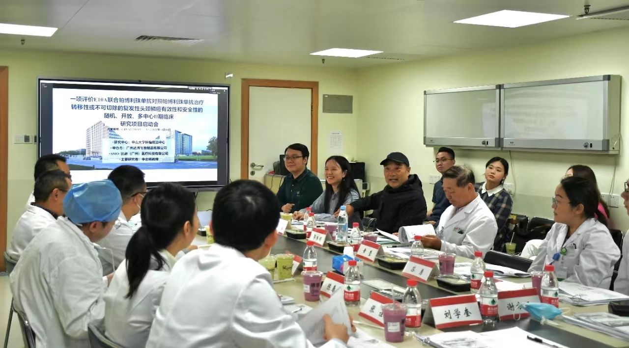 11月28日,由廣州達博生(shēng)物制(zhì)品有(yǒu)限公司自主研發的治療用生(shēng)物制(zhì)品1類新藥“一項評價E10A聯合帕博利珠單抗對照帕博利珠單抗治療轉移性或不可(kě)切除的複發性頭頸鱗癌有(yǒu)效性和(hé)安全性的随機、開(kāi)放、多(duō)中心Ⅱ期臨床研究”項目啓動會(huì)在中山(shān)大(dà)學腫瘤防治中心內(nèi)科會(huì)議室圓滿開(kāi)展